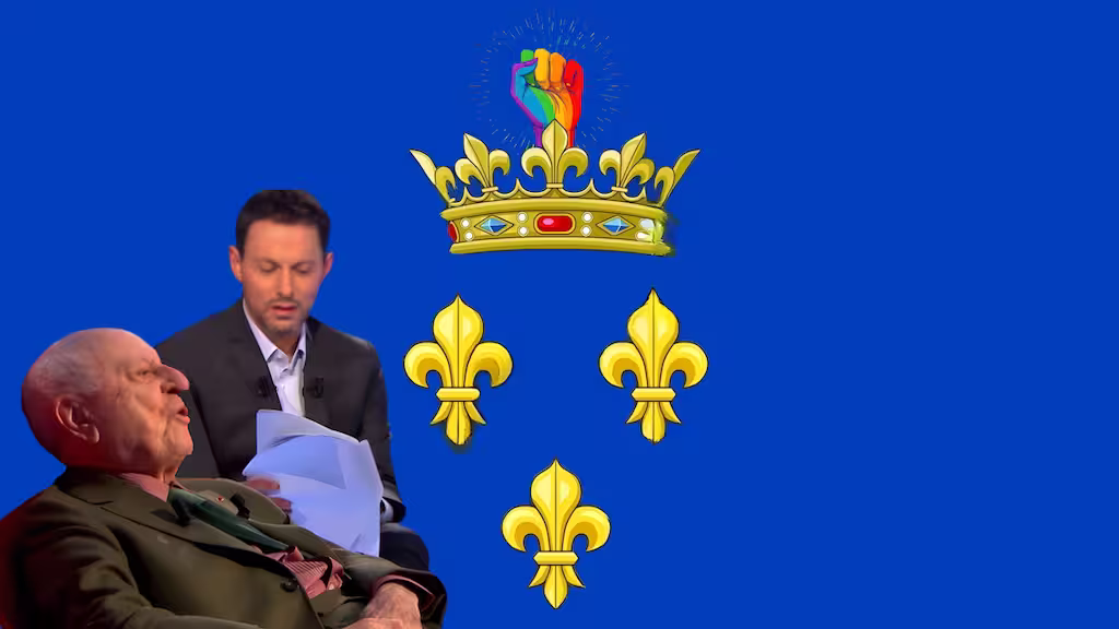 Expirant en direct à la télévision de service public sur "LE DIVAN" de son héritier Marc-Olivier FOGIEL , le vieux souverain, agitateur, activiste et financier de la caste LGBTQUIA++, désigne son successeur présent à ses côtés, et lui passe le sceptre : "Le Roi est mort, vive le Roi !"