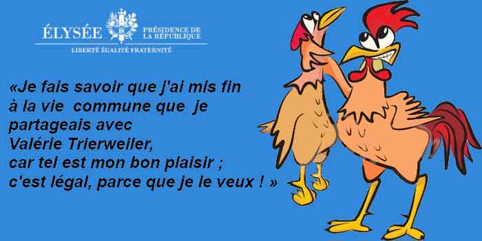 Parce qu’il n’éprouvait plus d’appétence charnelle pour ses charmes, le souverain de droit maçonnique répudie publiquement et humilie sa favorite, la jette comme un kleenex, la licencie comme une domestique coupable de vol, pour la remplacer par de la chair tendre et fraîche plus en rapport avec ses besoins priapiques exacerbés par le Viagra ! Le Pape, les féministes « femens » ainsi que Najat Valaud-Belkacem auraient donné leur accord ! Celle-ci nous a confirmé que la nouvelle loi socialiste punissant de lourdes sanctions pécuniaires les clients des prostituées ne s’appliquerait pas au chef de l’état lors de ses relations avec Julie Gayet puisqu’il bénéficie de par son statut d’une immunité générale et absolue.