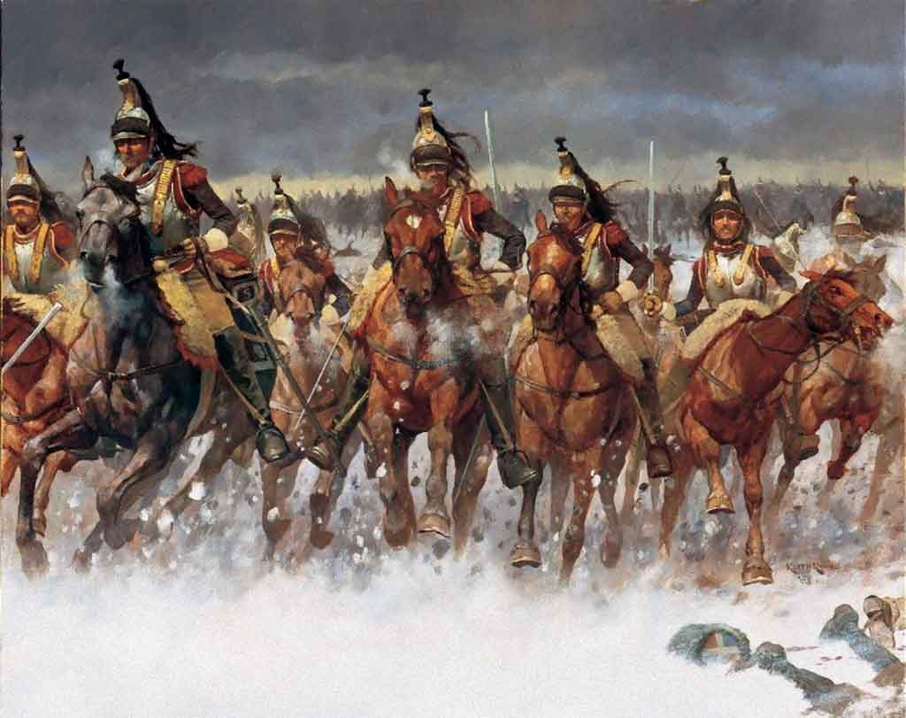 Aujourd’hui, 208e anniversaire de la boucherie d’Eylau, lorsque la Grande Armée perdit en une journée 10.000 hommes sur le champ de bataille par un froid glacial, et ne dut sa victoire sur l’armée impériale russe qu’à la plus grande charge de cavalerie de l’histoire, lorsque les 12.000 cavaliers de Murat enfoncèrent les lignes russes qui combattaient pourtant avec un avantage numérique d’un contre deux !!!