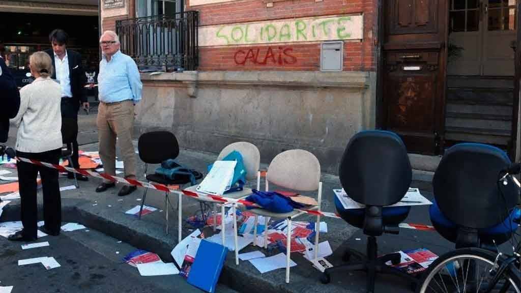 Le 14 avril, un collectif d’une dizaine de tarlouzes – agissant selon les préceptes si chers aux associations entretenues et utilisées par Pierre Bergé, telles ACT’UP -, qui consistent à investir et dégrader en masse les lieux visés lorsqu’ils sont vides et s’enfuir à toutes jambes avant que quiconque n’arrive – a vandalisé le local de l’UMP et maltraité la seule secrétaire présente, avec le slogan « A Calais l’UMP expulse, expulsons l’UMP » sous prétexte que la Maire de Calais demande avec constance l’expulsion du centre ville des milliers d’étrangers en situation irrégulière qui pourrissent la vie des habitants !