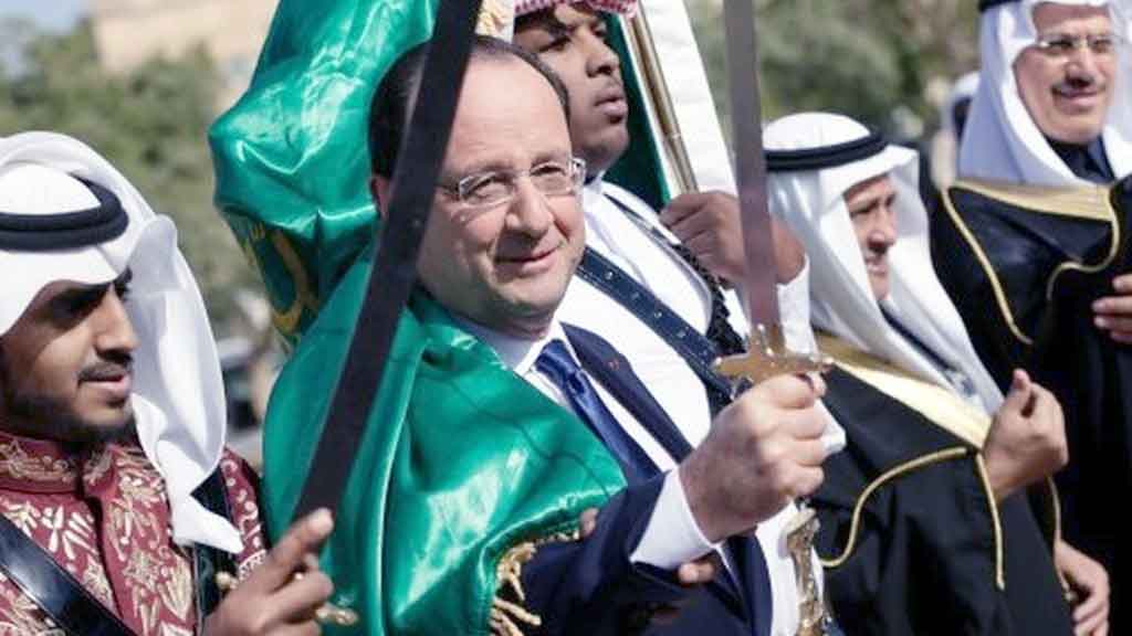 Flanby est grand, Valls est son prophète ! Moi le franc-maçon militant laïcard anti-religieux, je viens de visiter un pays que j’admire car il incarne mes aspirations les plus chères : pas d’élections, une monarchie de droit divin protectrice des croyants et de la religion unique, l’islam, dont le livre sacré, le CORAN, est érigé en charte constitutionnelle et régit d’un même trait la vie politique, sociale, morale et religieuse avec des sanctions allant de l’amputation d’un membre pour les plus modérées à la décapitation au sabre pour les plus usuelles : pas de droits de l’homme ; les femmes, troupeau de bétail ne sortant que voilées et interdites de conduite, traitées en sous espèce esclave de l’homme pour le service exclusif de son maître, son plaisir sexuel, et la reproduction, mises à mort par lapidation en cas d’infidélité ; toutes les religions, hors l’Islam, proscrites, leurs lieux de culte interdits et détruits, leurs serviteurs exécutés ! Les travailleurs immigrés dont dépend l’économie du pays assujetis en esclavage ! Le Paradis d’Allah ! Malheureusement, je n’ai pu amener dans mon Airbus ma compagne, Valoche, car avec concomittamment un mari et deux amants, elle aurait risqué gros ; ni les Femens, mes amies et protégées, au cas où elles auraient tenté d’aller uriner dans une mosquée, voyez l’embarras ! Pas même VALAUD BELKACEM ou TAUBIRA qui auraient constitué une provocation dans un état où l’homosexualité est punie de mort ! C’est dans cet Etat souverain que je suis venu m’instruire sur la meilleure façon de combattre, pour la satisfaction de mes financiers juifs, l’ennemi mortel de la Nation, le comique qui constitue notre plus grand péril, M. DIEUDONNE M’Bala M’Bala ! Mes amis saoudiens m’ont conseillé le sabre pour lui tarncher la tête et m’en ont même offert un d’argent et d’or lors d’une cérémonie où j’étais revêtu du drapeau vert de l’Islam ; dés mon retour, je le confie à VALLS pour qu’il accomplisse le sale boulot ! Nous sommes tous d’accord : que de blondes prostituées ukrainiennes viennent profaner des autels et des cathédrales chrétiennes et outrager les fidèles avec leur urine et du sang de veau pendant les célébrations, c’est une « blagounette » innocente et pleine d’humour ; qu’un comique noir chante la fameuse « quenelle » pendant son spectacle c’est un crime, car ça ne plait pas aux extrêmistes juifs, dont les milices sont pourtant déjà militarisées et armées sur le territoire national avec mon accord ! Egalité, que ne je ferais-je en ton nom !