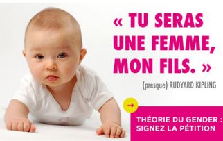 Après avoir tenté l’introduction de la « théorie des genres » dans l’enseignement dispensé aux enfants avec l’ABCD de l’EGALITE dans le cadre de la réforme des rythmes scolaires, puis avoir osé prétendre devant la colère des parents : « La théorie des genres, ça n’existe pas, ça n’existe pas », voila que le principal média de service public, dans son journal de 20 heures, en remet une couche pour nous prouver tout le bien-fondé de cette théorie, conclue rappelons-le par le suicide de l’un des deux enfants utilisés pour l’expérimentation par le concepteur de la théorie ! Mais ça n’existe, Najat vous le dit : passez votre chemin, il n’y a rien à voir, c’est une rumeur !