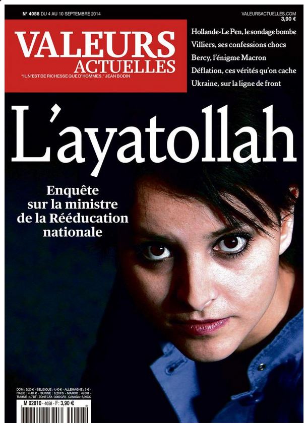 Cette très chère Najat, surprotégée par la Presse BNP et tous les médias de la gauche jocrisse et bien-pensante (chaînes service public financées par tous les contribuables, groupe CANAL PLUS et ses chaînes BOBO) qui font actuellement tous campagne en sa faveur à titre de bouclier présidentiel, est paraît-il très éprouvée par les « Une » de certains médias qui doutent de ses capacités au poste dont elle vient d’hériter.