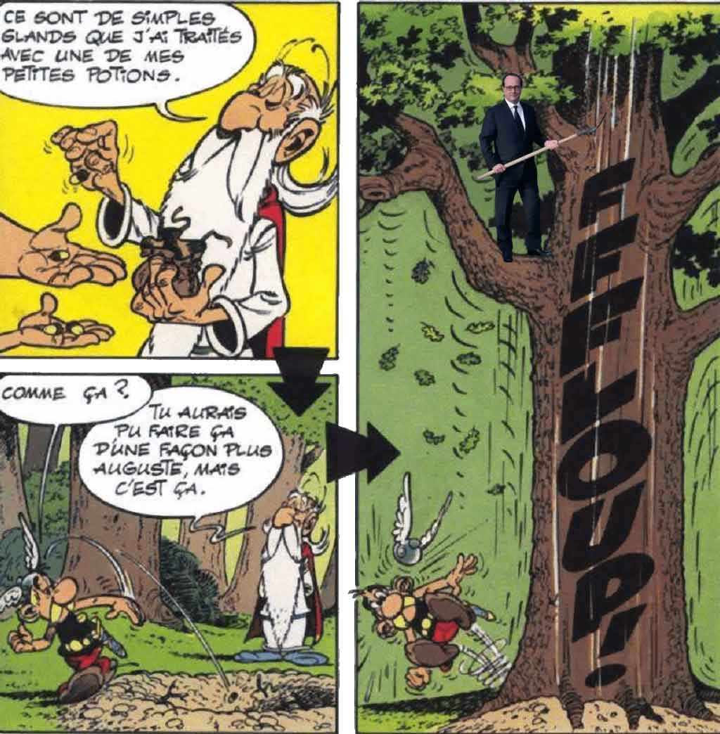 A l’occasion de l’anniversaire des 50 ans de l’ONF, il a demandé à son service de communication de reproduire devant un parterre d’imbéciles « sans dents » qui voyagent en transports en commun (sic Macron), le miracle de sa naissance divine : à partir de glands touchés par l’esprit saint du 11 janvier, un chêne millénaire est né spontanément dans le parc de l’Elysée !