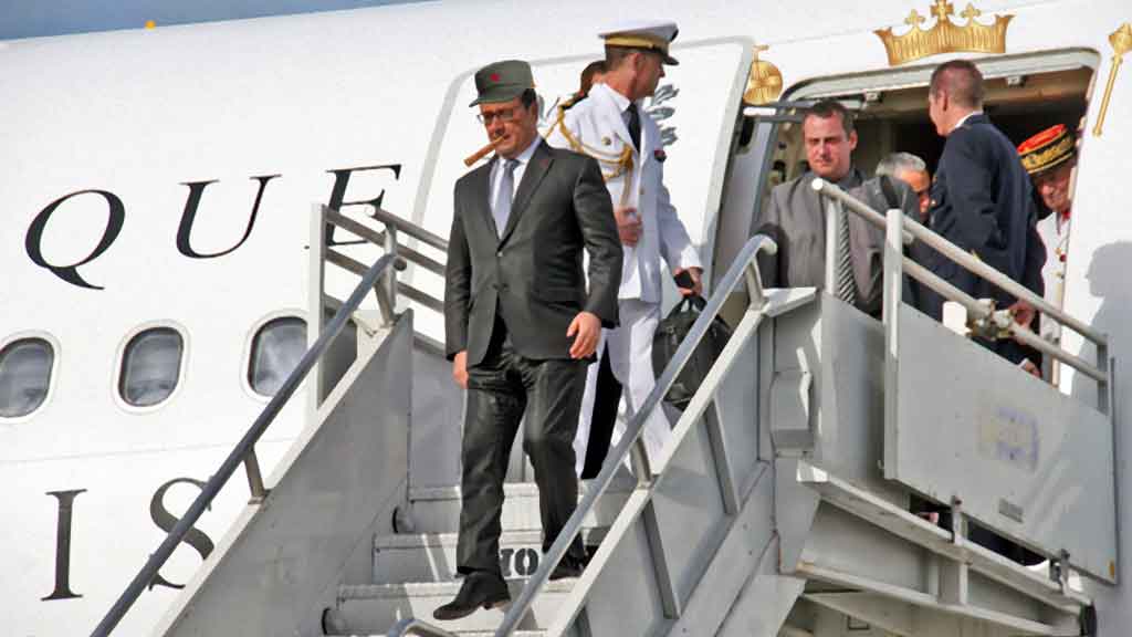 - en sus, pour bien montrer sa Majesté et la grandeur de l’Etat français au-travers les siècles, les symbôles éternels et régaliens de l’Etat-Nation étaient représentés au-dessus de la porte principale de l’Airbus présidentiel : la « couronne de « Charlemagne », la « Main de Justice « , le « Sceptre de Dagobert » et bien évidemment l’ « orbe chrétien » symbôle d’autorité des grandes monarchies européennes.