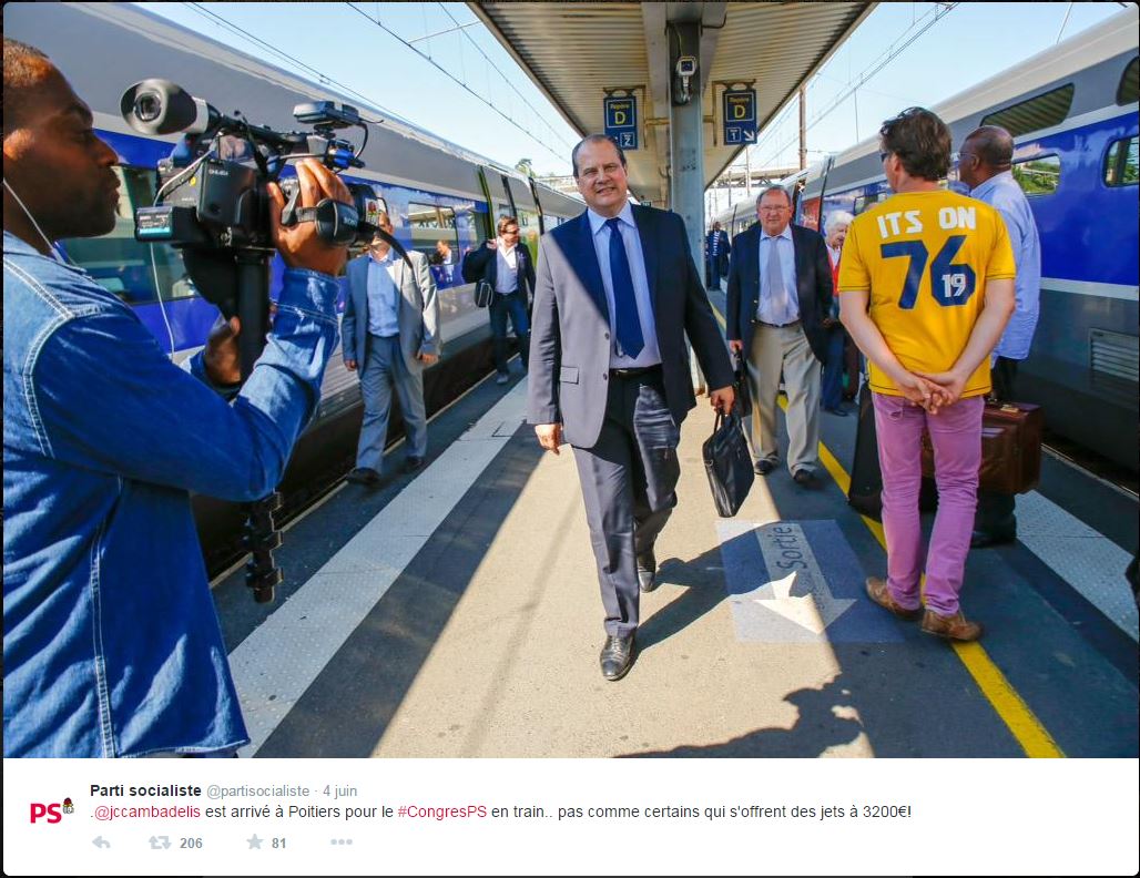 Le « Parrain » plastronne, le « parrain » est fier : cette fois, il moralise sur le quai de la gare de Poitiers : il ne lui manque que l’auréole de sainteté, mais pour un trotskiste lambertiste, cela ne serait pas du meilleur goût ! L’allusion très fine aux 3200 € vise bien entendu SARKOZY pour un voyage pris en charge par les Republicains pour un meeting politique au HAVRE ; le lendemain, VALLS détournait 24.000 € du budget de l’Etat pour une sortie ludique avec ses enfants pour aller voir en Allemagne un match de football opposant une équipe espagnole à une équipe italienne. mais lui ne récoltait que des louanges !!!