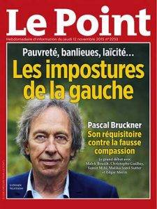 Le philosophe, romancier (Prix Médicis) et essayiste Pascal Bruckner, proche du parti socialiste et membre du groupe des Nouveaux Philosophes dénonce cette semaine dans LE POINT les impostures de la gauche, du clown BOZZO jusqu’à VALLS, homme d’autorité aux coups de menton aussi vains que les résultats obtenus dans sa politique sécuritaire confiée à TAUBIRA et du Syndicat de la Magistrature qui en affiche les résultats sur le « mur des cons » :