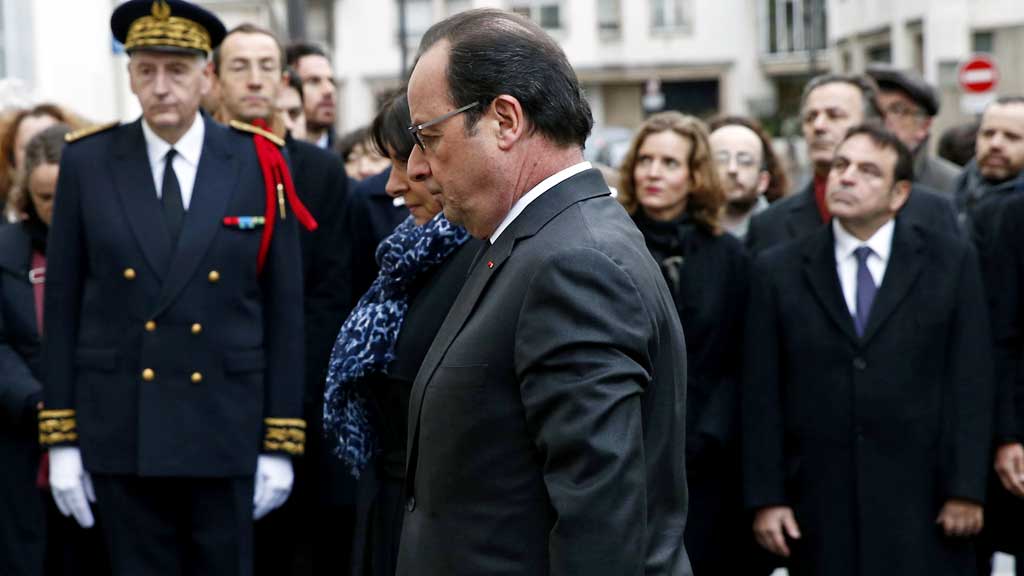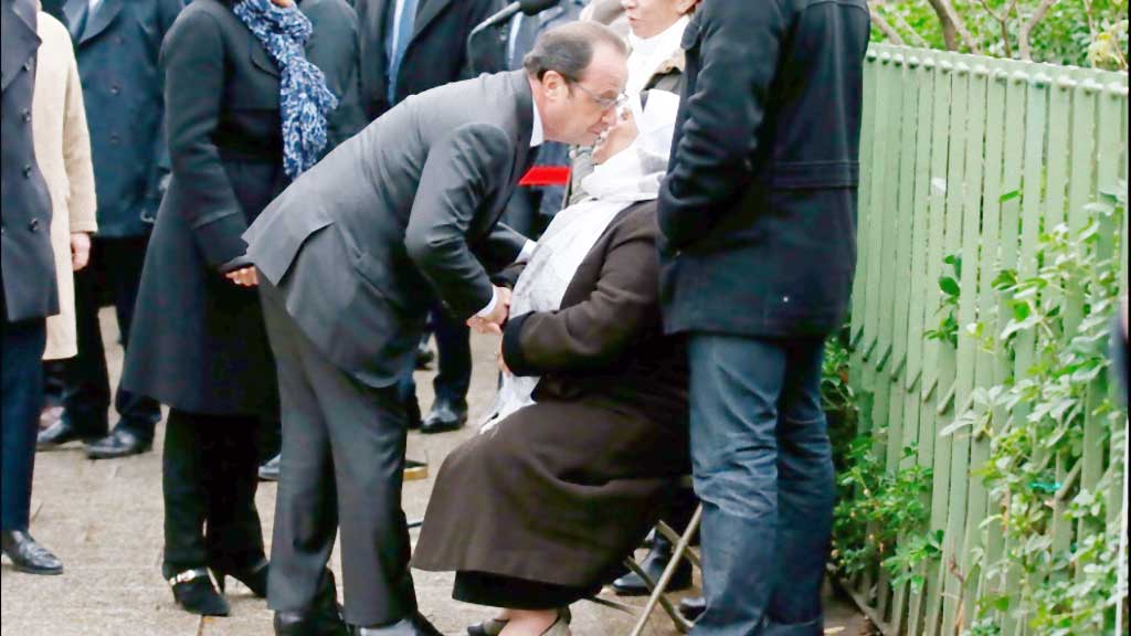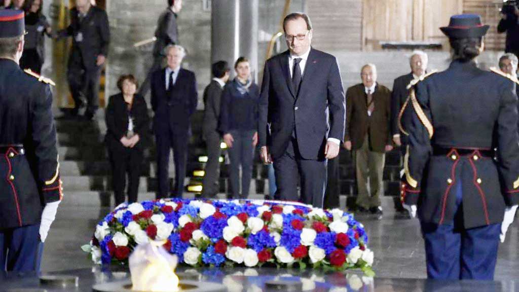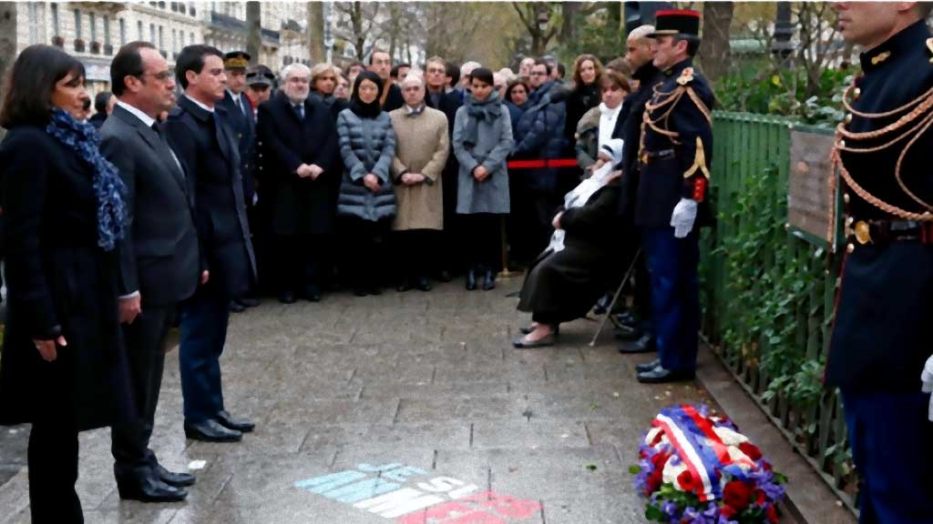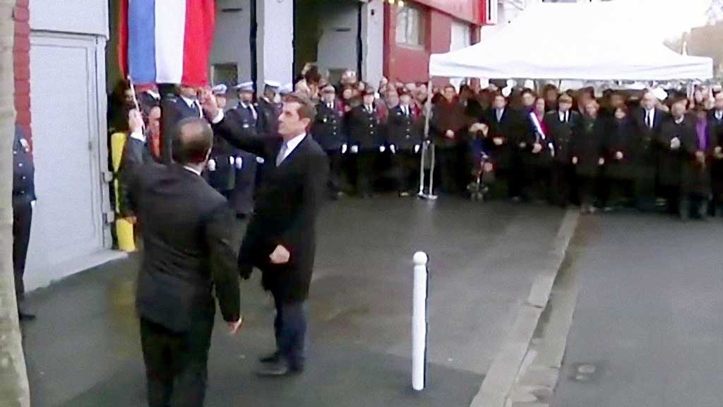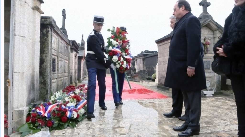 Tel un grand comédien Il se vautre impudemment dans le sang des victimes innocentes, au mépris du chagrin de leurs proches à seule fin de conquérir dans l’indécence la plus abjecte la sympathie des « sans dents » et des « sous chiens » qu’il a tellement trompés, manipulés par ses mensonges et ses mystifications ; il inaugure désormais les plaques de rue et les plaques commémoratives, voire les plaques d’égout si cela peut lui rapporter quelques voix, débauchant des chanteurs anciennement sarkozystes pour mettre en scène sa grandeur, dans le mutisme complet imposé par Gaspard Gantzer puisque plus personne ne l’écoute et qu’il perd en popularité, si durement acquise, dès qu’il ouvre la bouche.