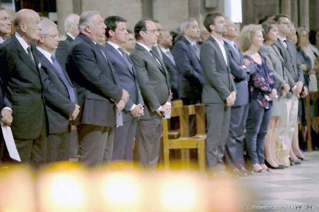 Le site public de l’ELYSEE (financé par l’Etat, comme le coiffeur-teinturier et la maquilleuse), célèbre à sa façon la nouvelle alliance entre le sabre franc-maçon et le goupillon, en publiant une photographie du clown assistant pour la première fois de sa vie à office catholique, après bien sur avoir été exorcisé par un prêtre spécialiste de la Paroisse ! Fait étonnant : la photographie a été recadrée afin d’éliminer SARKOZY, dont on n’aperçoit plus qu’une partie de l’avant-bras tenant dans sa main une feuille de papier blanc !