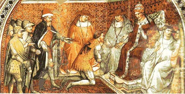 Le CLOWN informé par son service de manipulation qu’il allait perdre les prochaines élections présidentielles pour s’être aliéné le vote catholique, dut alors s’humilier et se prosterner pour solliciter une visite privée auprès du Pape, qui n’accepta de le recevoir qu’au prix d’une Pénitence de Canossa : le CLOWN dut donc se prostituer une nouvelle fois (mais cela il en a l’habitude) en reniant sa foi ancienne dans le Grand Orient de France, et nu dans le bain baptismal, prêter devant le Pape le serment solennel que CLOVIS prêta il y a 1500 ans devant l’Evêque Saint-Remi :