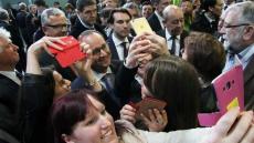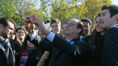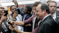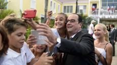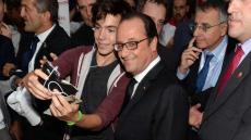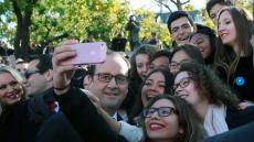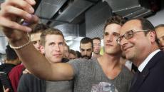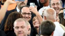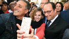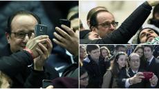 Et même si les supporters d’Hillary lui tournent le dos pour la prendre en photo, il ne faudra jamais oublier que pour le mépris absolu manifesté par ses électeurs floués, BOZZO-le-CLOWN est un pionnier, inégalé et inégalable. Et même si désormais, il ne se déplace (avec son coiffeur-teinturier, sa maquilleuse et son cire-pompes tous payés par le contribuable français 10.000 € par mois) qu’en AIRBUS présidentiel, et si l’assistance autorisée à l’approcher, dans des secteurs clos de barrièrage, filtrés et protégés par d’importantes forces de police, est constituée des seuls cadres et militants du Parti Socialiste, strictement choisis et sélectionnés, il n’a jamais cessé de céder à son addiction pour les « selfies », censés représenter une marque d’affection du grand démagogue pour ses électeurs.