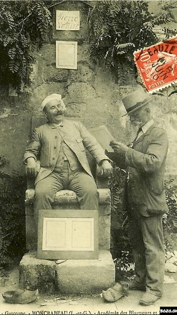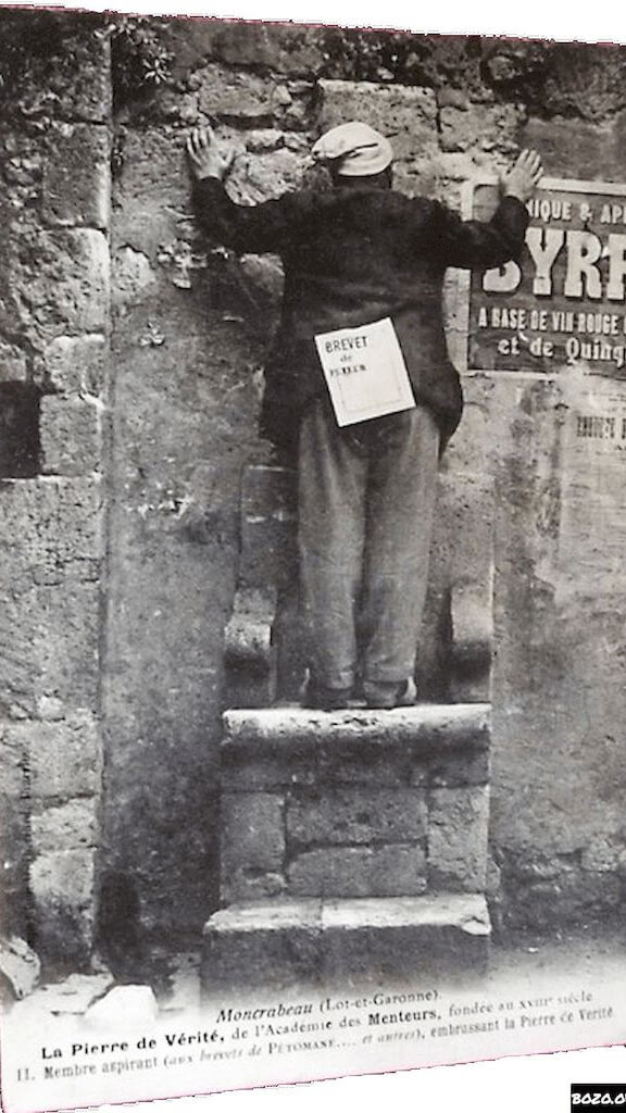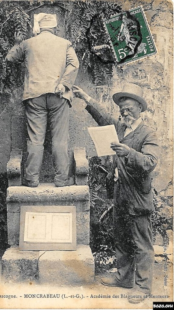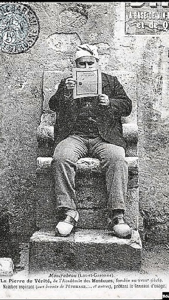 Précis, concis, chirurgical, récité avec émotion mais distanciation, sans la moindre hésitation dans la voix ni excès gestuel, ce « mensonge » magnifique fit des millions de dupes et de victimes et demeure à toujours dans l’histoire comme le plus parfait exemple de « menterie » jamais raconté sur le « fauteuil en pierre des Menteurs » de MONCRABEAU, où ils furent pourtant si nombreux et talentueux, tels l’histoire de ce foie gras de 35 kilos issu d’un croisement douteux entre un canard des Landes et une autruche rendu possible car le premier est l’une des seules espèces de palmipède à savoir se déplacer sur des échasses