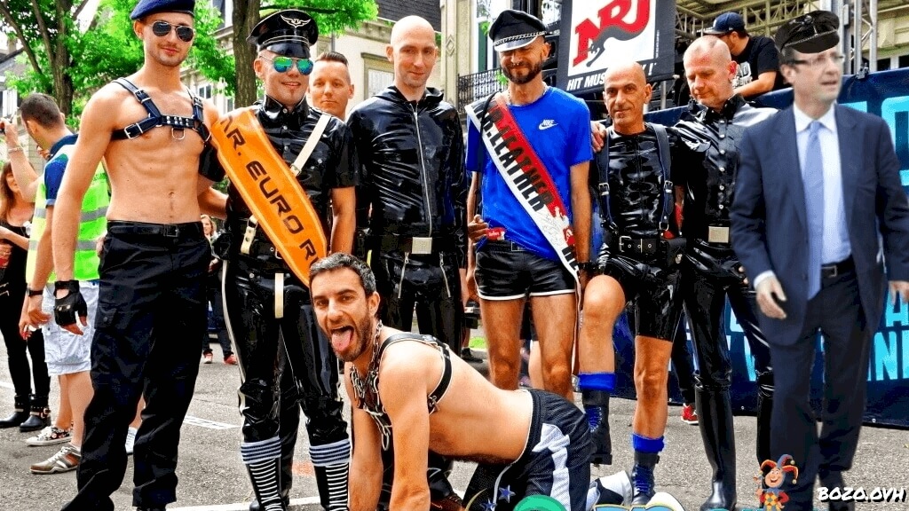 Avec un courage indicible pour un candidat démagogue que sa présence à un tel événement pourrait desservir électoralement dans la « fachosphère », BOZO (qui avait déjà utilisé le grand homme en encaissant son argent pour financer ses campagnes électorales et le payant en retour avec le « Mariage pour Tous », l’élevant par ailleurs dans les salons de l’Elysée à la dignité de « Grand Officier de la Légion d’Honneur » pour les paroles historiques prononcées contre le TELETHON ou à la gloire de la gent féminine et la maternité : « Louer son ventre pour faire un enfant ou louer ses bras pour travailler à l’usine, quelle différence ? », dépêcha son ombre bienveillante pour défiler parmi les adjoints homosexuels de la Maire de Paris (donc la quasi totalité !), dans le groupe des gays « sadomasos » revêtus de leur harnachement canin de cuir.