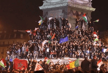 Le soir même, pour fêter cette merveilleuse nouvelle, il rejoignait la Place de la Bastille où, en souvenir de sa victoire électorale du 6 mai 2012 au terme de laquelle il avait terrassé le tyran SARKOZY, ses amis metteurs-en-scène Jean-Michel Ribes et Olivier Pic, avaient organisé une grande soirée festive dans la tradition de celles organisées par l’ineffable Jack Lang. Anne Hidalgo avait consenti à ce que la « Colonne de Juillet » retrouve pour l’occasion son décor de Noêl, et des drapeaux des pays musulmans du Maghreb et de l’Afrique sub-saharienne étaient à nouveau déployés en signe d’allégresse sur les marches du Monument.